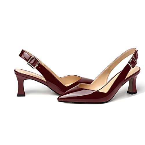 NUMALEO Womens Buckle Pointed Toe Ankle Strap Casual Patent Evening Spool Mid Heel Pumps Shoes 2.5 Inch 5