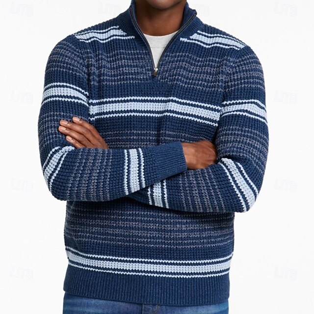 More information about Men's Graphic Fair Isle Sweater Zip Sweater Sweater Polo Zip Collar Casual Vacation Home Daily Zipper Knitting Keep Warm Long Sleeve Fall Winter Blue