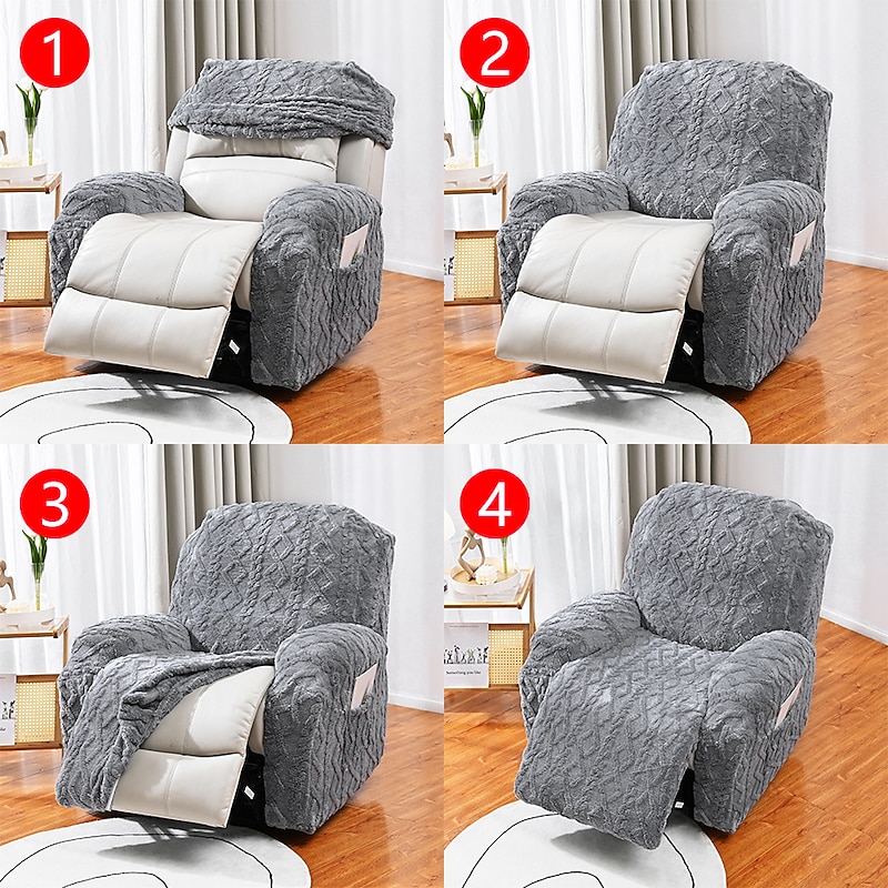 1 Seat Velvet Recliner Covers, Stretch Jacquard Reclining Chair Covers for 1 Cushion Reclining Sofa, Single Seat Recliner Couch Cover, Very Soft, Machine Washable 4