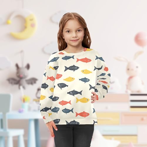 JUNZAN Retro Colorful Fishes Little Boys Sweatshirt Hoodie Long Sleeve Hoodies for Girls Athletic 4T 6
