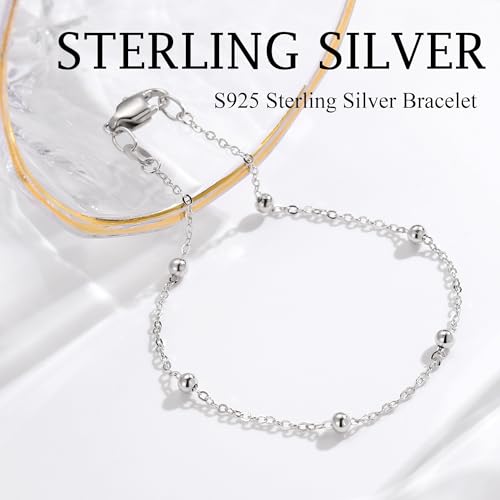 HOT ! IEFWELL S925 Sterling Silver Bracelet for Women - Solid 14K Real Gold Over Satellite Bead Chain Bracelet, 6.5/7/7.5/8/8.5/9 Inches Sterling Silver Chain Bracelets, Jewelry Gifts for Women