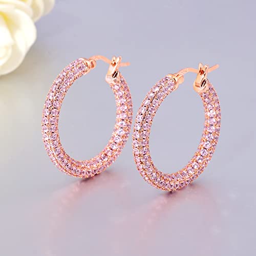 • Hoop Earrings for Women: CZ hoop earrings for women hypoallergenic. Not too heavy, not too big, not too small. Perfect size for women. Hoops inlaid half-circles pink cubic zirconia, elegant and fashion suitable for your daily wearing