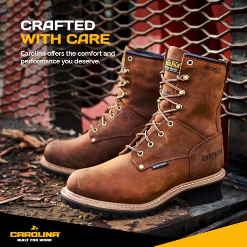 HOT ! Carolina Elm 8" Soft Toe Insulated Waterproof Logger Boots for Men - 600G Thinsulate, with Oil- & Slip-Resistant Rubber Lug Outsole, EH-Rated