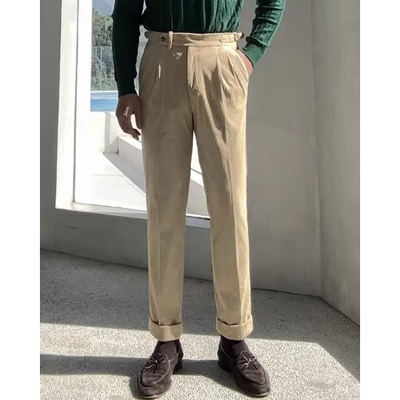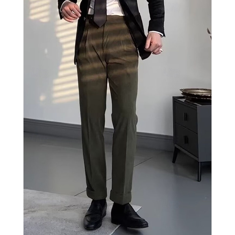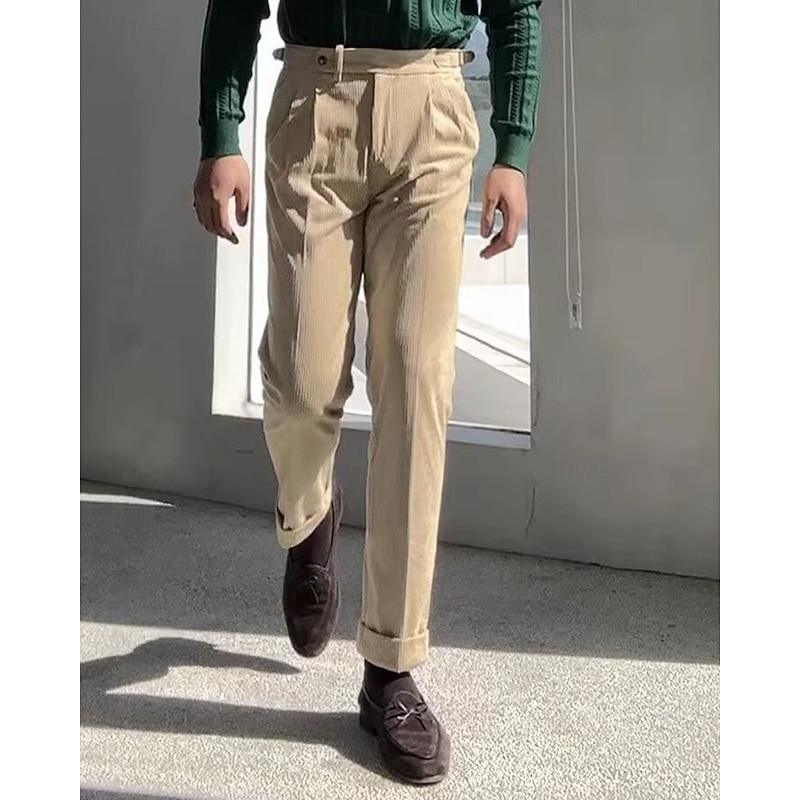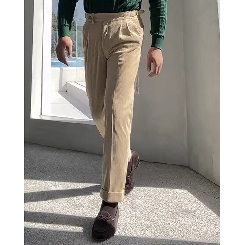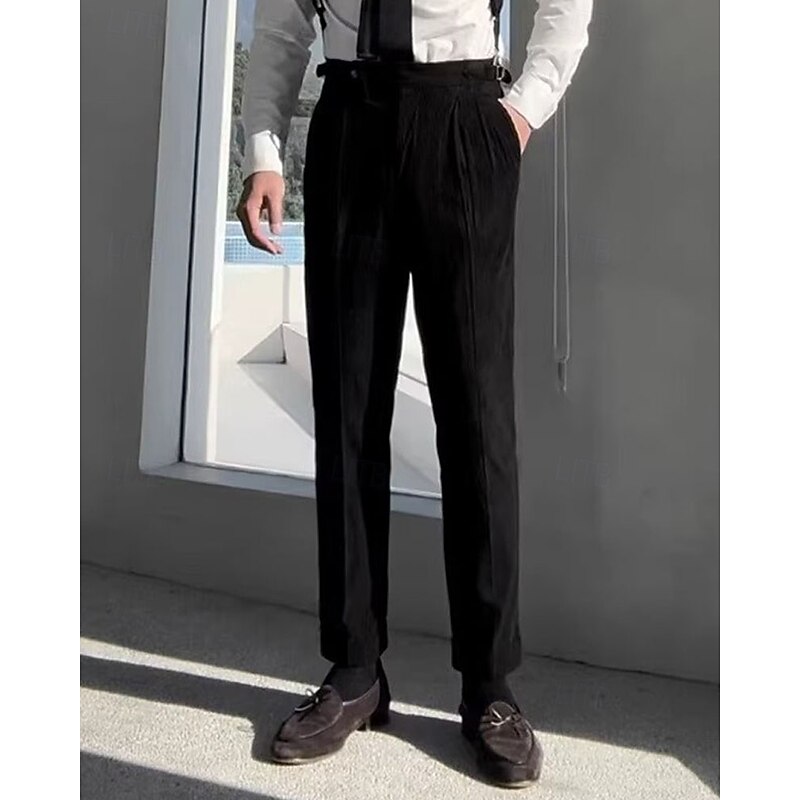 More information about Men's Graduation Dress Pants Corduroy Pants Naples Trousers Trousers Buttons Pocket Solid Colored Comfort Formal Party Work Fashion Classic Style Black Green Micro-elastic