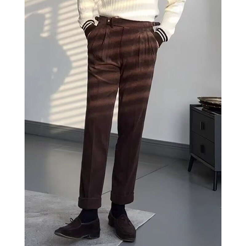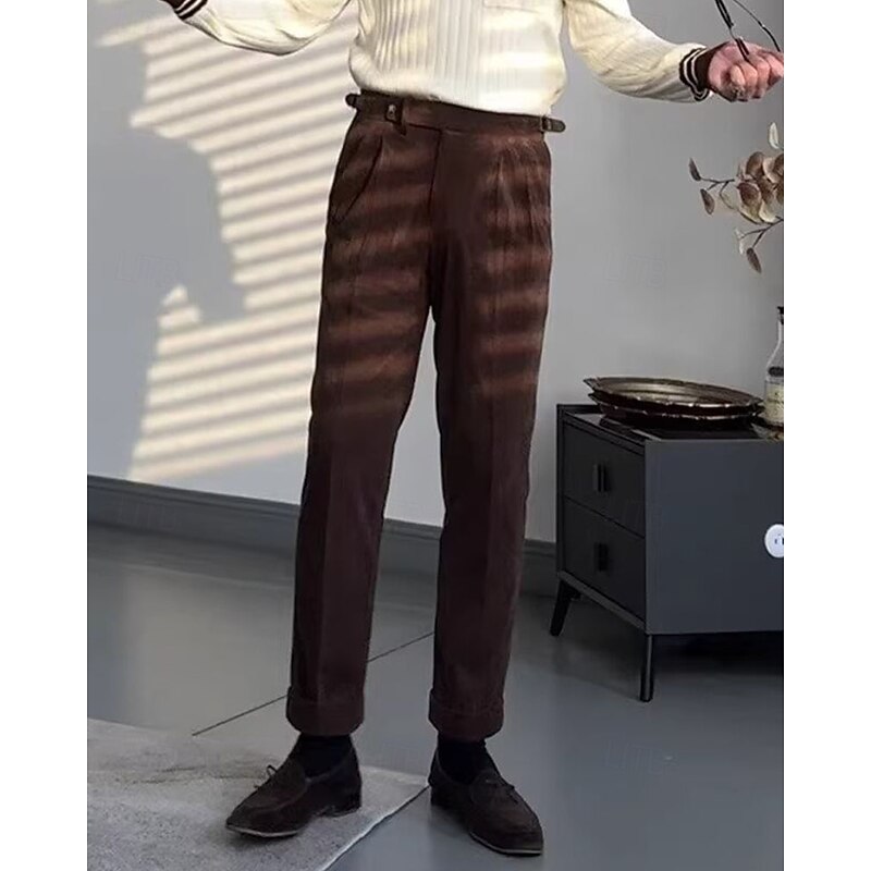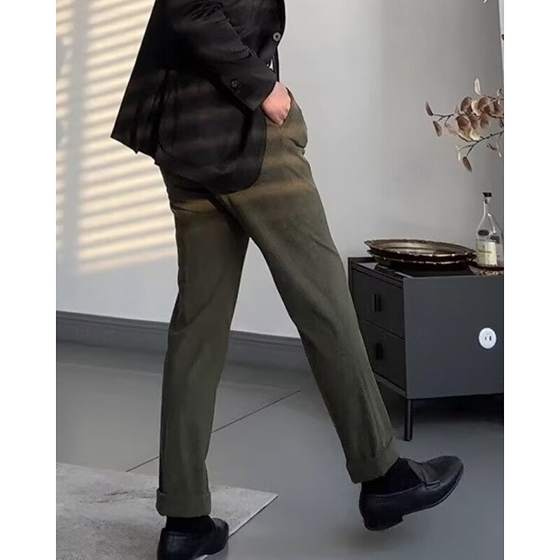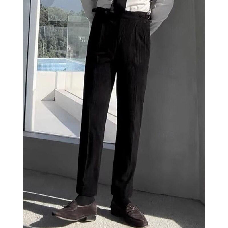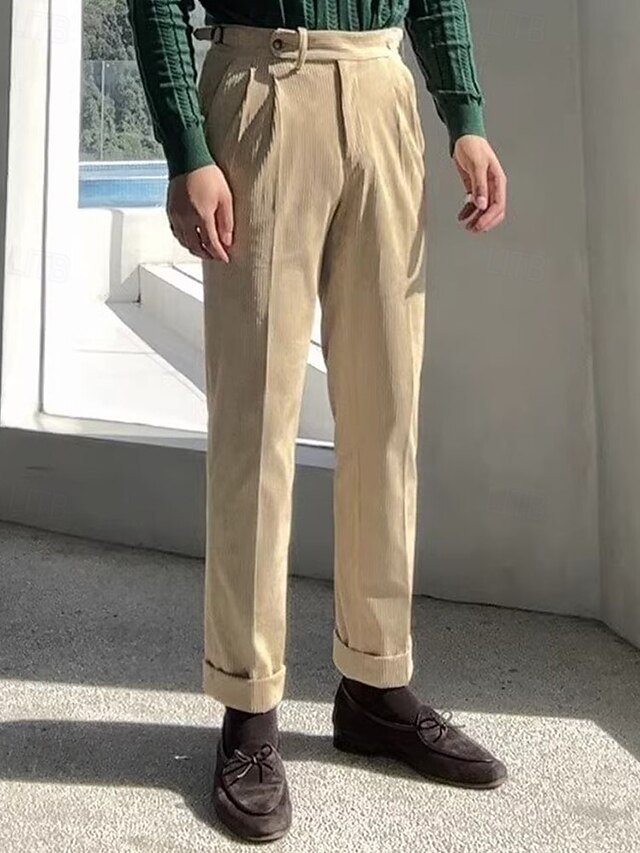 More information about Men's Graduation Dress Pants Corduroy Pants Naples Trousers Trousers Buttons Pocket Solid Colored Comfort Formal Party Work Fashion Classic Style Black Green Micro-elastic