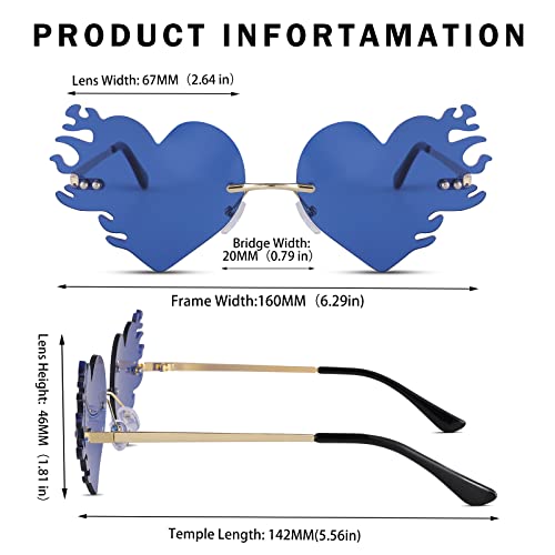 Melting Heart sunglasses for Men/Women Rimless Irregular Party Unique Sun Glasses Novelty Heart Fire Flame Eyewear 5