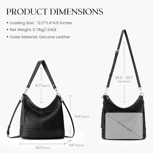 More information about Genuine Leather Hobo Crossbody Bag for Women, Soft Real Leather Bucket, Shoulder Handbag Purse with 2 Removable Strap