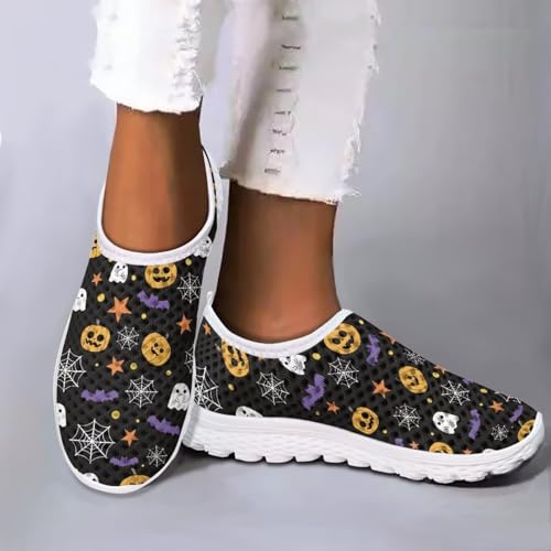 FKELYI Halloween Shoes for Women Slip On Walking Shoes Breathable Mesh Flats Athletic Running Tennis Sneakers 7