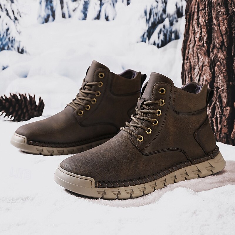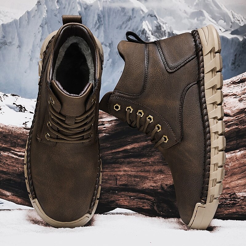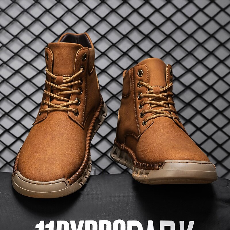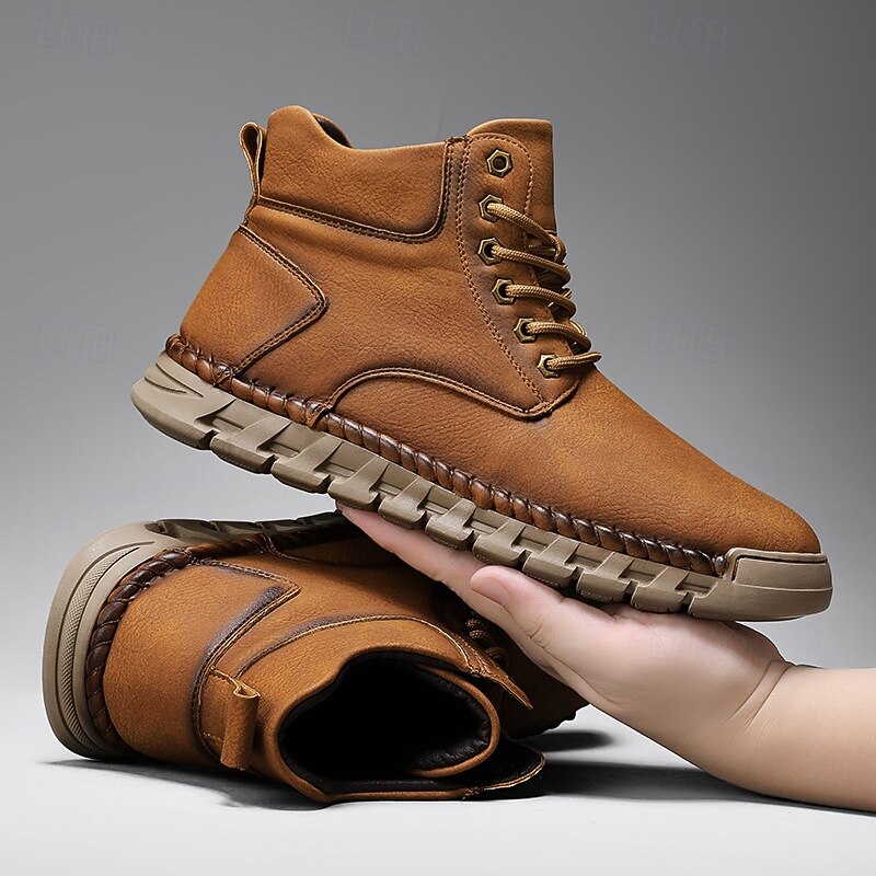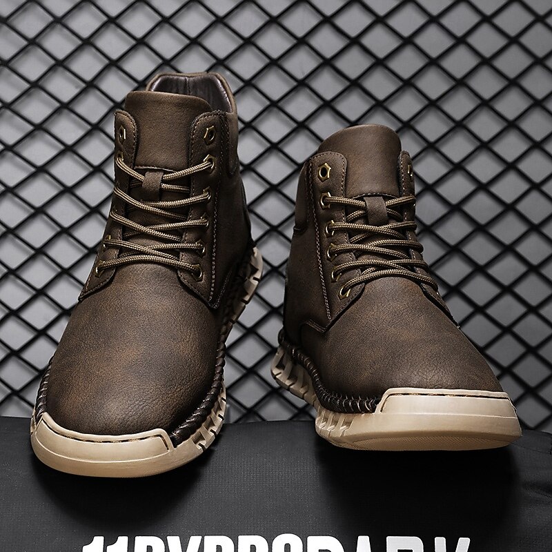 More information about Men's Casual Faux Leather Ankle Boots - Lightweight Brown Lace-Up with Durable Flexible Sole for Outdoor and Everyday Wear