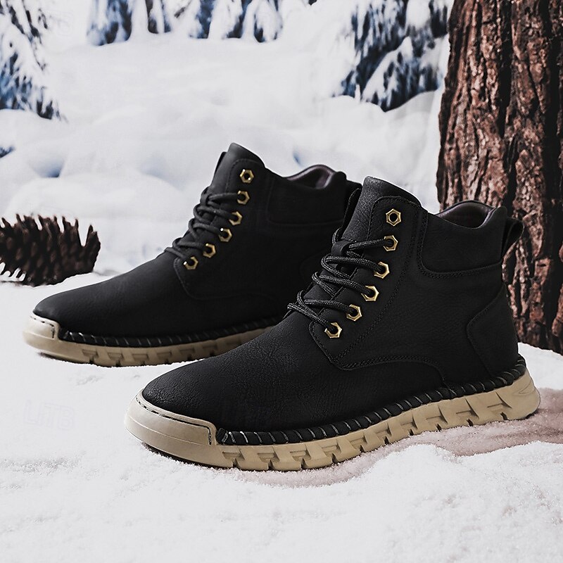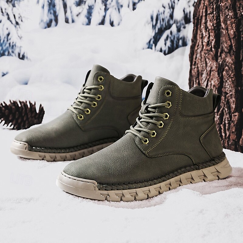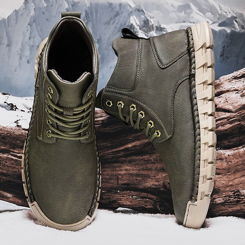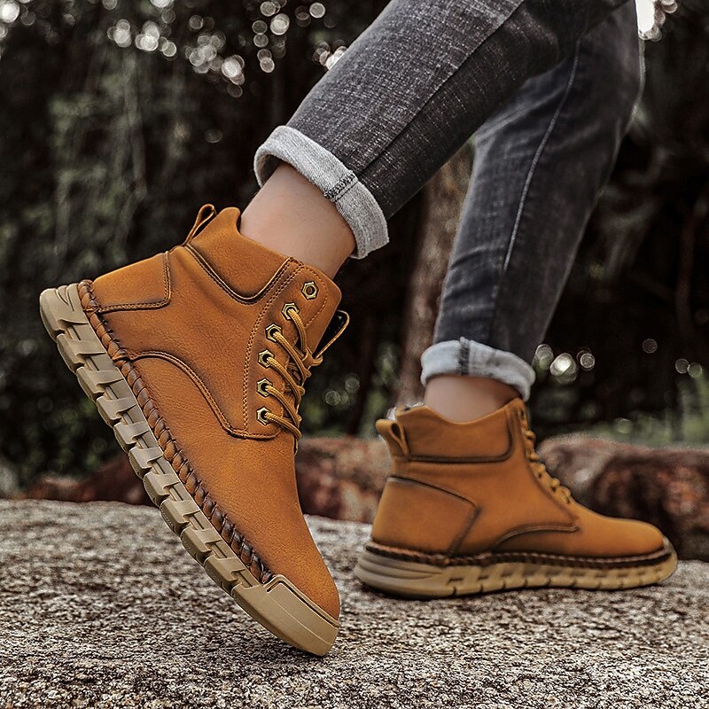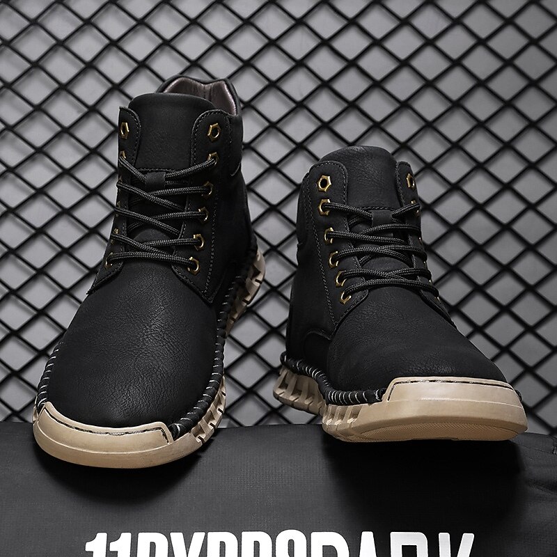 More information about Men's Casual Faux Leather Ankle Boots - Lightweight Brown Lace-Up with Durable Flexible Sole for Outdoor and Everyday Wear