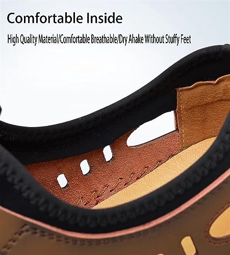 Lace-up Hollow Out Business Loafers for Men's Round top Low Top Leather Casual Sandal Shoes Slip On Flat Heel Soft Sole Oxfords (Color : Brown, Size : 10 US) 6