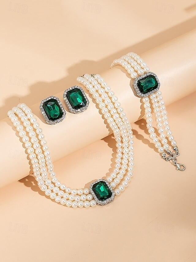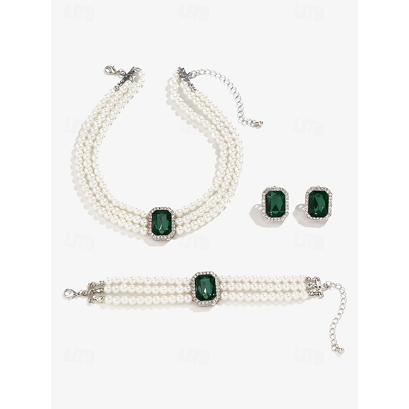 $14.99 - Elegant Women's Pearl Choker Necklace Set with Green Gemstone and Matching Bracelet & Earrings – Formal Occasion Jewelry 2025. Shop for cheap Women's Necklace online? Buy at lightinthebox.com on sale today!