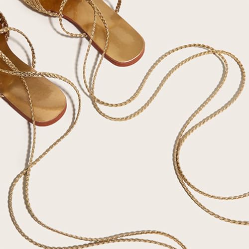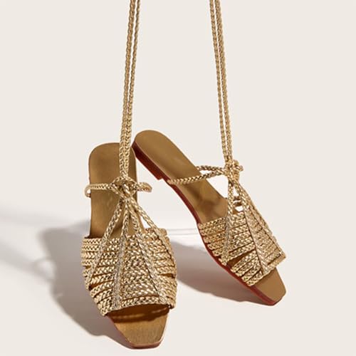 Women's Gold Cross Braided Strap Flat Fish Mouth Roman Sandals Summer Square Toe Sexy Adjust Lace Up Comfortable Soft Sole Boho Sandals Suitable for Party Dress Beach 6