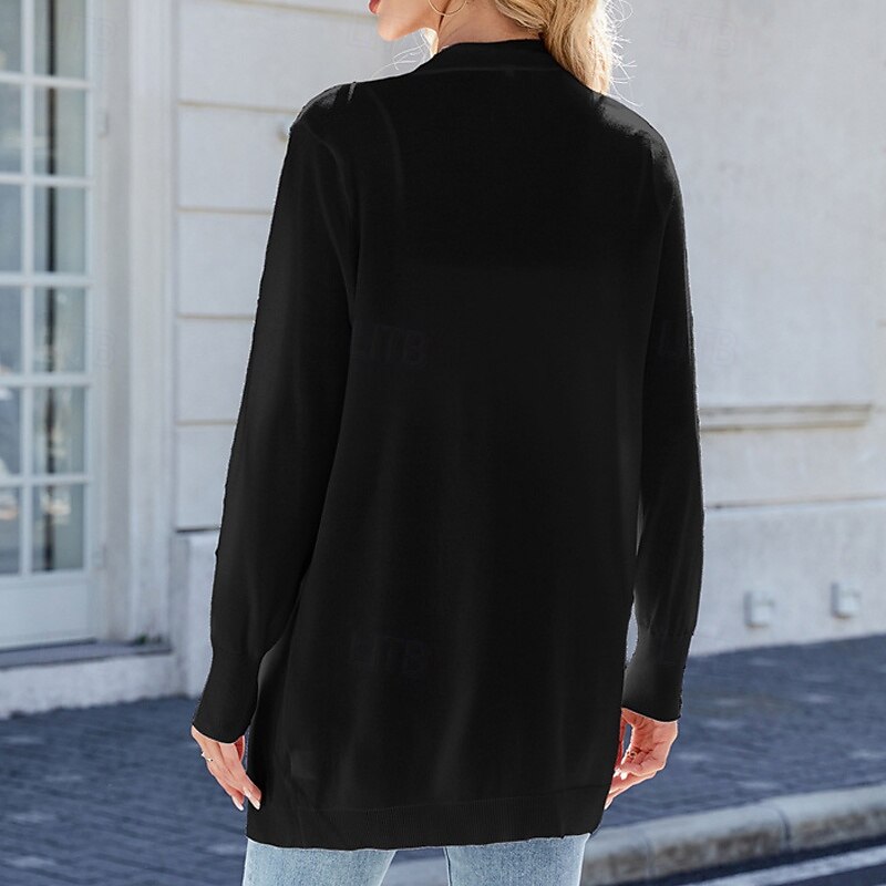 More information about Women's Sweater Cardigan Fashion Streetwear Daily Striped Ribbed Open Front Knitted Long Sleeve Long Tops Knit Holiday Going out Weekend White / Black Black Fall Winter