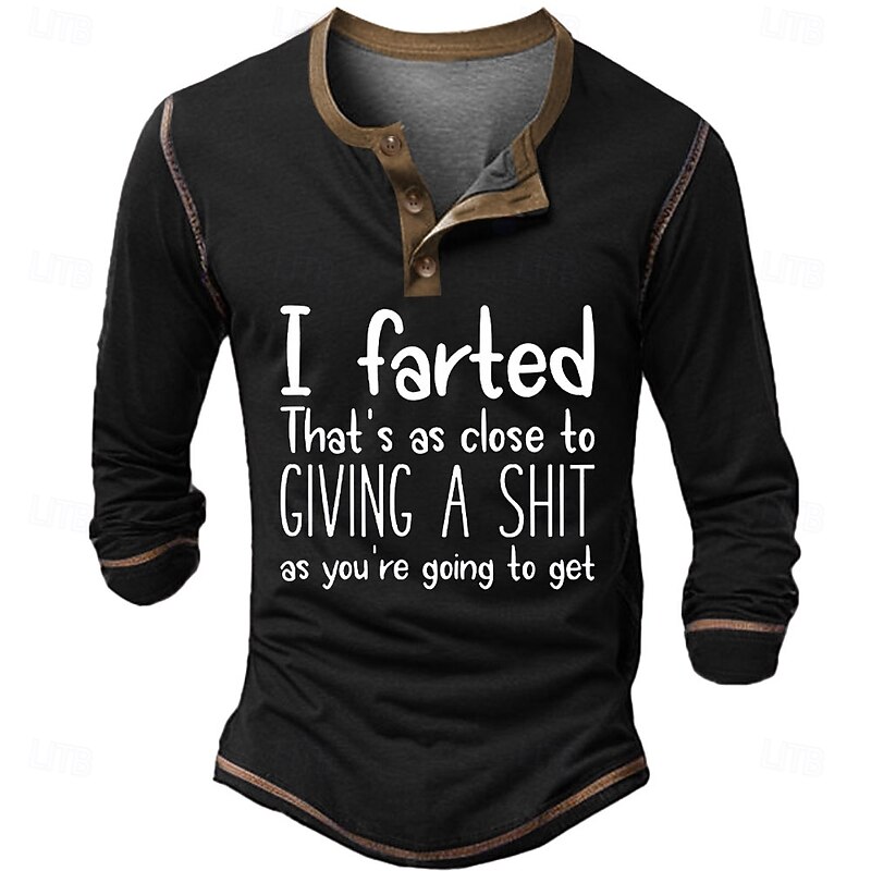 More information about Men's Graphic Letter Henley Shirt Tee Long Sleeve Vintage Fashion Designer Outdoor Casual Daily Spring & Fall Dark Gray Black Navy Blue Henley Henley T-Shirt