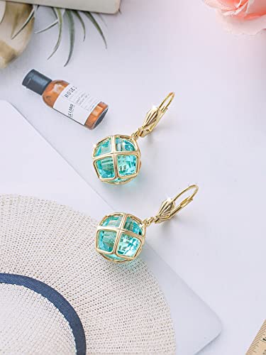 14MM Austrian Crystal Dangle Earrings for Women 14K Glod Jewelry 6