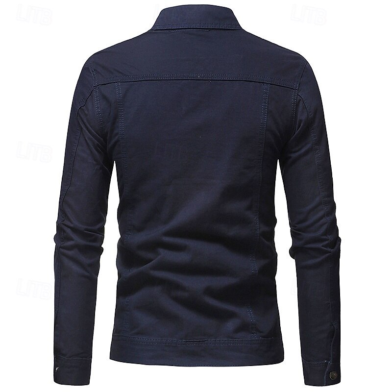 Men's Lightweight Jacket Shirt Jacket Casual Jacket Shacket Vacation Daily Breathable Pocket Spring Fall Plain Fashion Classic Lapel Regular Black White Red Navy Blue Blue Jacket 1
