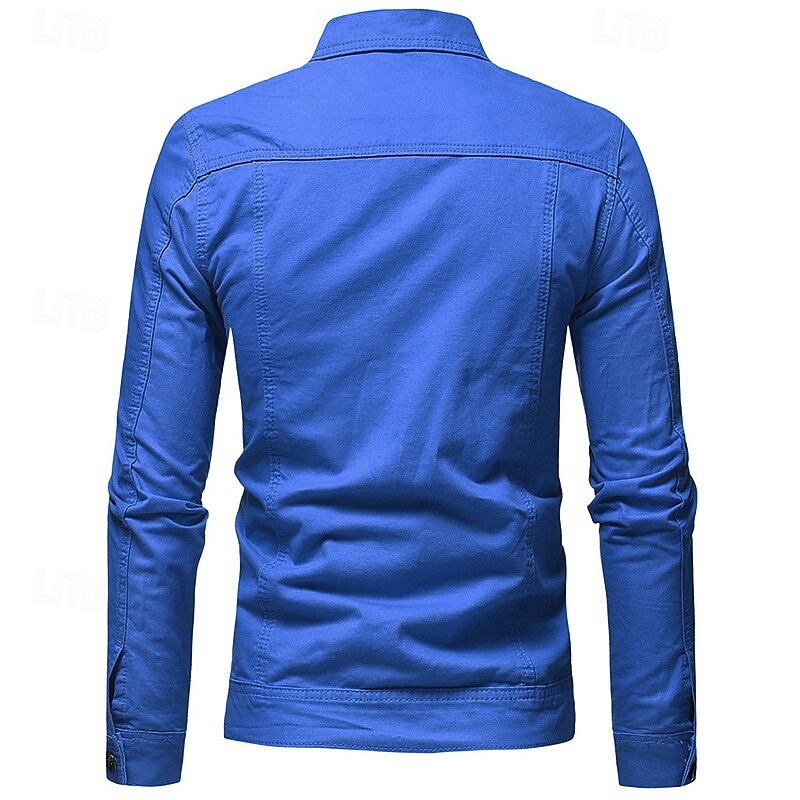 Men's Lightweight Jacket Shirt Jacket Casual Jacket Shacket Vacation Daily Breathable Pocket Spring Fall Plain Fashion Classic Lapel Regular Black White Red Navy Blue Blue Jacket 3