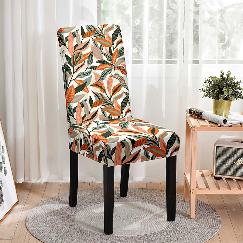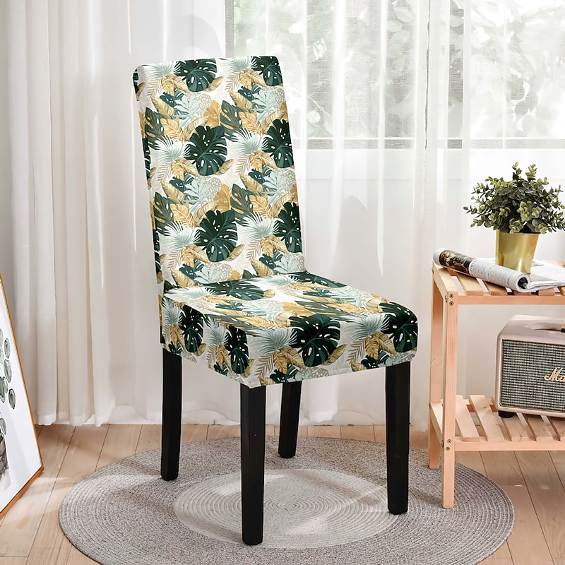 Stretch Leaves Dining Chair Cover Soft Chair Seat Slipcover Durable Washable Furniture Protector For Dining Room Party 1