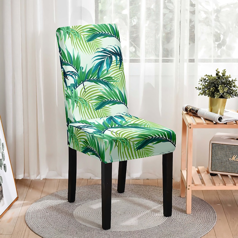 Stretch Leaves Dining Chair Cover Soft Chair Seat Slipcover Durable Washable Furniture Protector For Dining Room Party 14