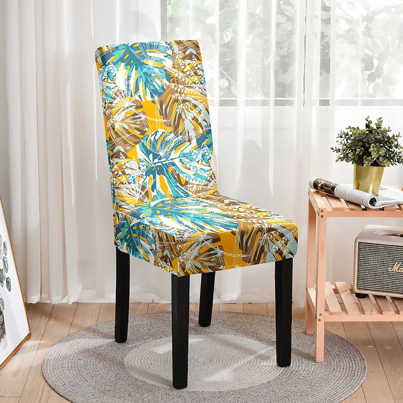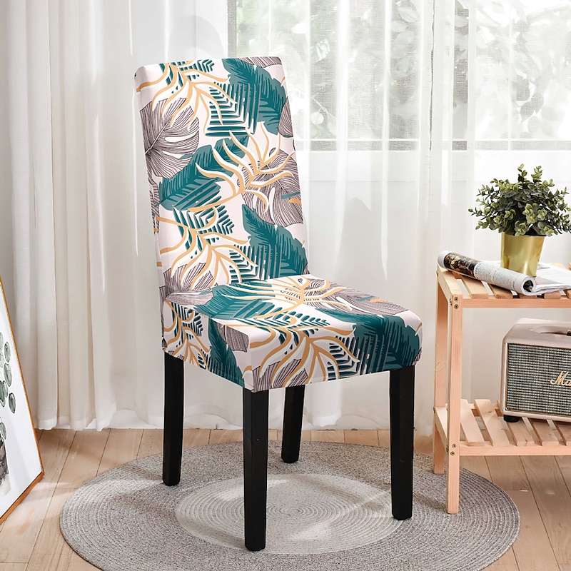 Stretch Leaves Dining Chair Cover Soft Chair Seat Slipcover Durable Washable Furniture Protector For Dining Room Party 19