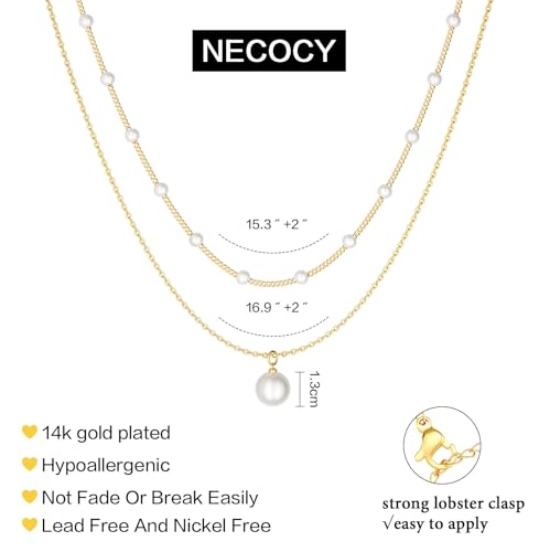 • 【MATERIAL】 NECOCY layered pearl choker necklace are made of premium 14K gold plated, non tarnish, lead-free, nickel-free and . Handmade pearl necklace, handpicked pearls in AAA quality, have blemish free surface that is smooth to perfect for any occasion