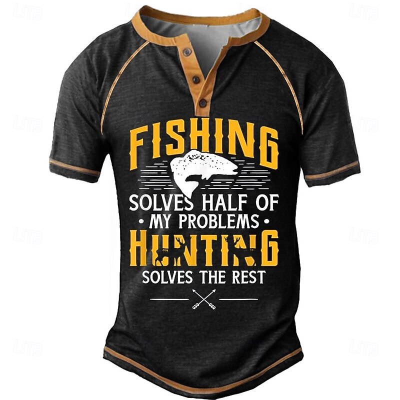 HOT ! Men's Graphic Fishing Hunting Henley Shirt Tee Short Sleeve Fashion Designer Outdoor Casual Daily Summer Black Army Green Navy Blue Henley Henley T-Shirt