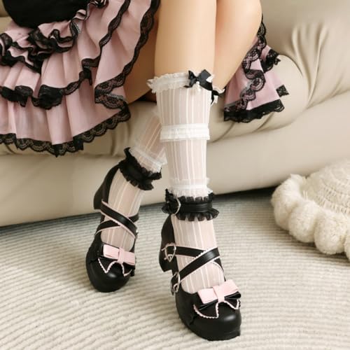 • CLASSIC DESIGN: These lolita platform shoes are designed with sweet bow, a round toe, a chunky heel, a buckle strap, and a rubber sole. They are comfortable and wearable.