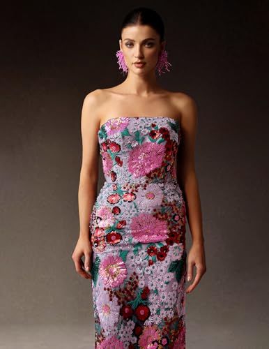BELLA BARNETT Glamorous Purple Hued Embellished Strapless Sequin Dress for Cockltail 5