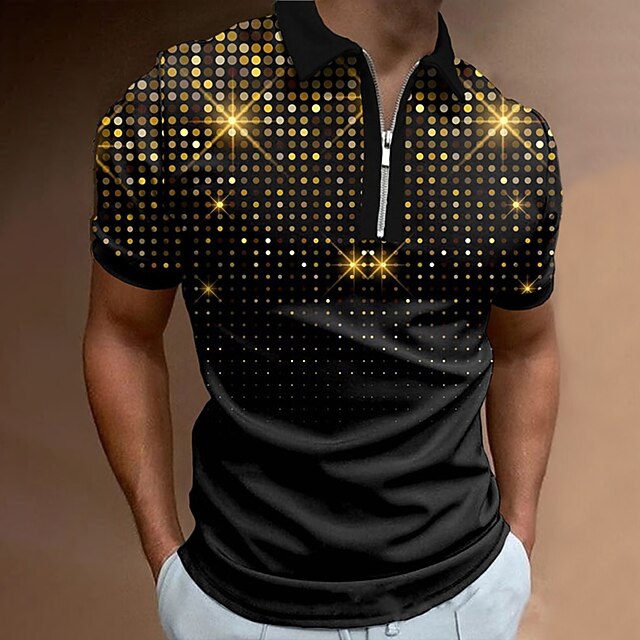 Men's Graphic Zip Polo Shirts Golf Shirt Short Sleeve Polo Shirts Collared Shirts Casual Vacation Wear Rave Wear Party Outfits 3D Print Quarter Zip Polo White Yellow Pink 14