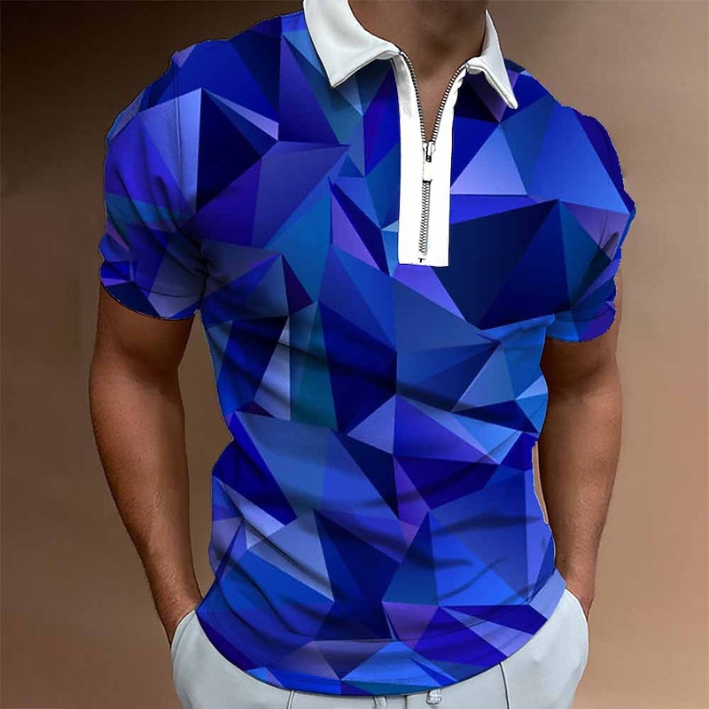 Men's Graphic Zip Polo Shirts Golf Shirt Short Sleeve Polo Shirts Collared Shirts Casual Vacation Wear Rave Wear Party Outfits 3D Print Quarter Zip Polo White Yellow Pink 11