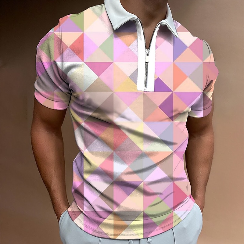 Men's Graphic Zip Polo Shirts Golf Shirt Short Sleeve Polo Shirts Collared Shirts Casual Vacation Wear Rave Wear Party Outfits 3D Print Quarter Zip Polo White Yellow Pink 9