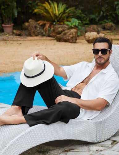 • Design: Cotton linen pants for men feature elastic waistband with adjustable drawstring allows customized and relaxed fit, wide leg style, flowy beach pants, 2 practical slant pockets, men baggy pants casual, loose fit palazzo pants