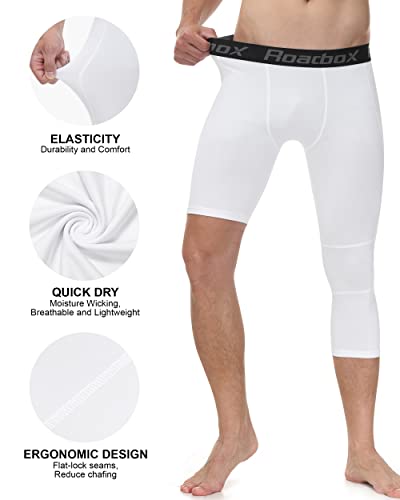 Roadbox Men's One Leg Compression Tights Pants, 3/4 Basketball Football Single Leg Leggings, Athletic Base Layer Underwear 3