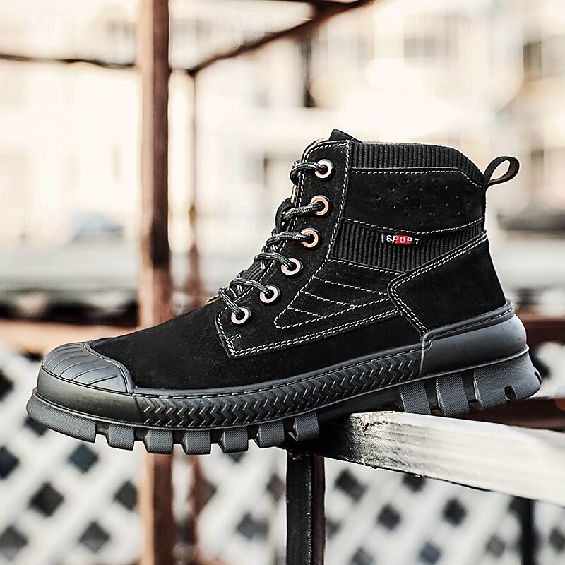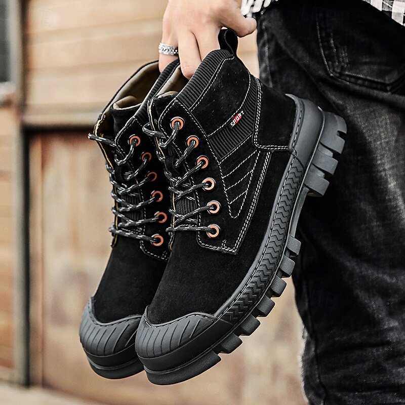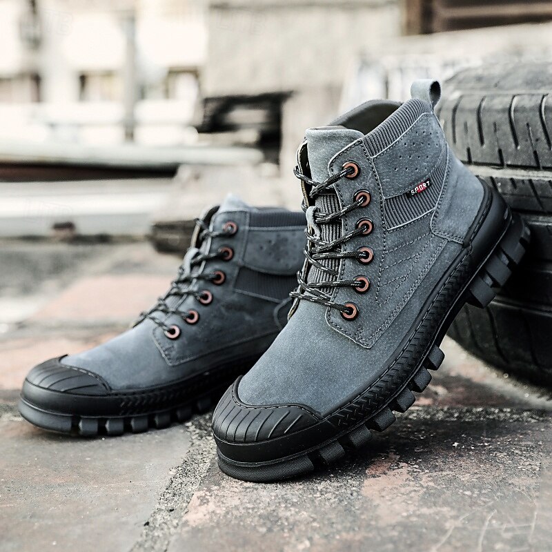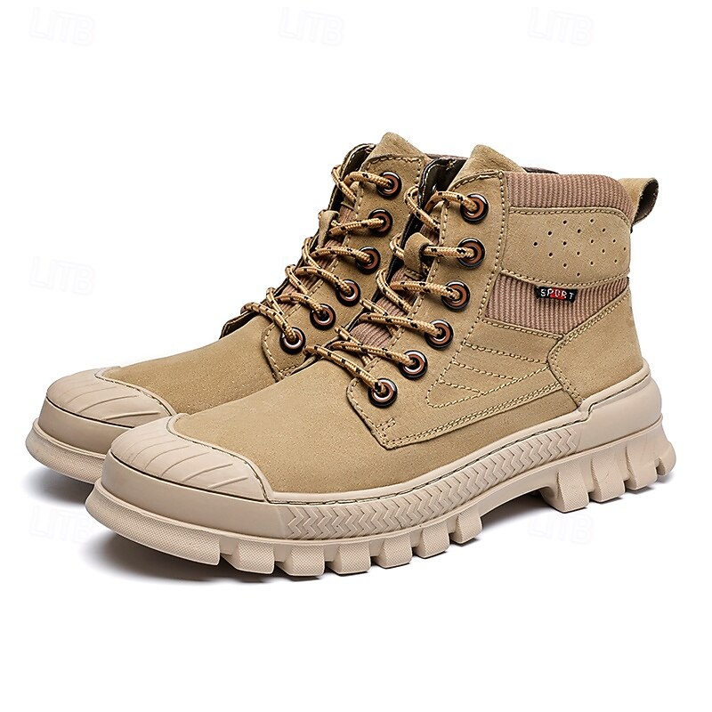 Men's Khaki Ankle Hiking Boots with Thick Rubber Outsole – Breathable Durable Outdoor Footwear for Mountain Climbing, Work and Adventure Travel 1