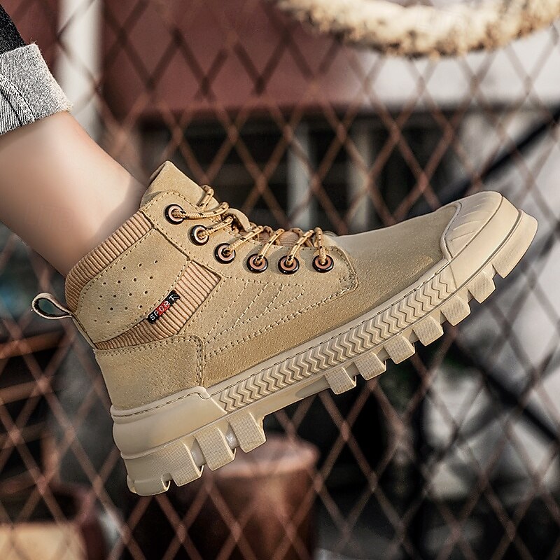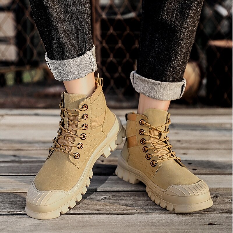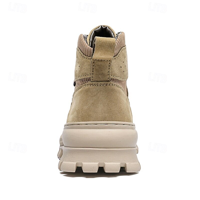 Men's Khaki Ankle Hiking Boots with Thick Rubber Outsole – Breathable Durable Outdoor Footwear for Mountain Climbing, Work and Adventure Travel 25