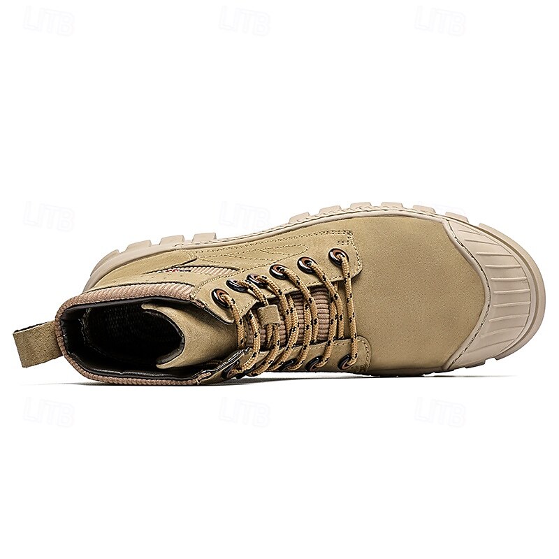 Men's Khaki Ankle Hiking Boots with Thick Rubber Outsole – Breathable Durable Outdoor Footwear for Mountain Climbing, Work and Adventure Travel 24
