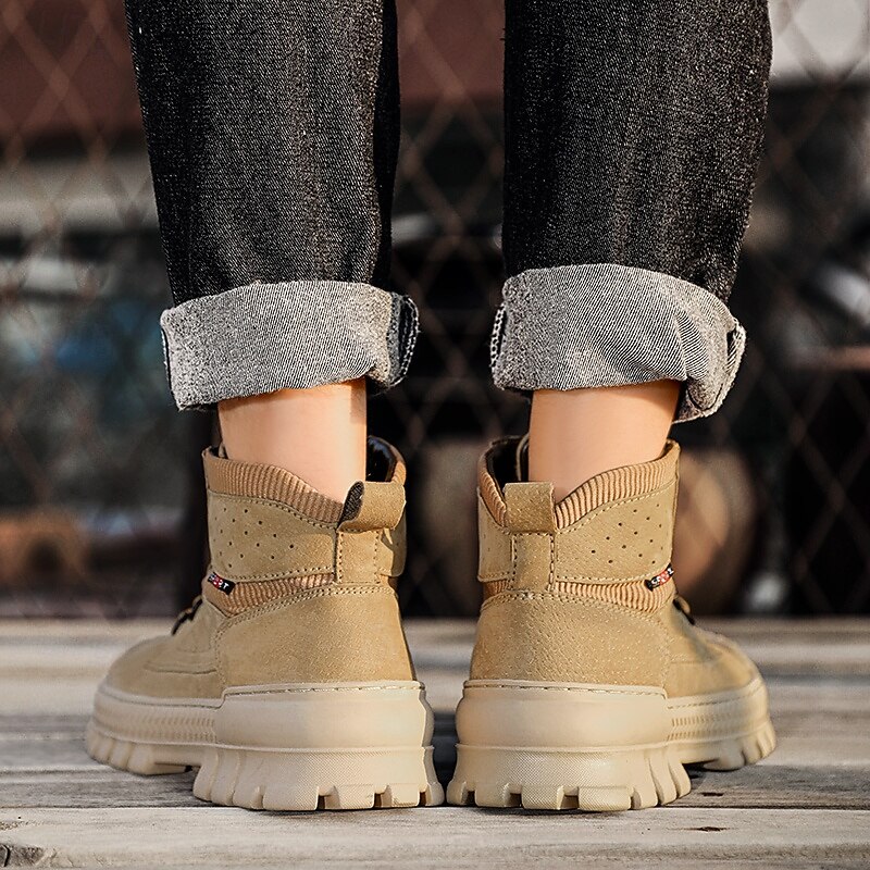Men's Khaki Ankle Hiking Boots with Thick Rubber Outsole – Breathable Durable Outdoor Footwear for Mountain Climbing, Work and Adventure Travel 22
