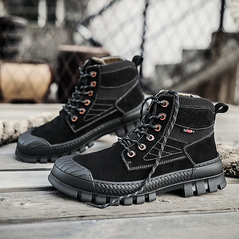 Men's Khaki Ankle Hiking Boots with Thick Rubber Outsole – Breathable Durable Outdoor Footwear for Mountain Climbing, Work and Adventure Travel 17
