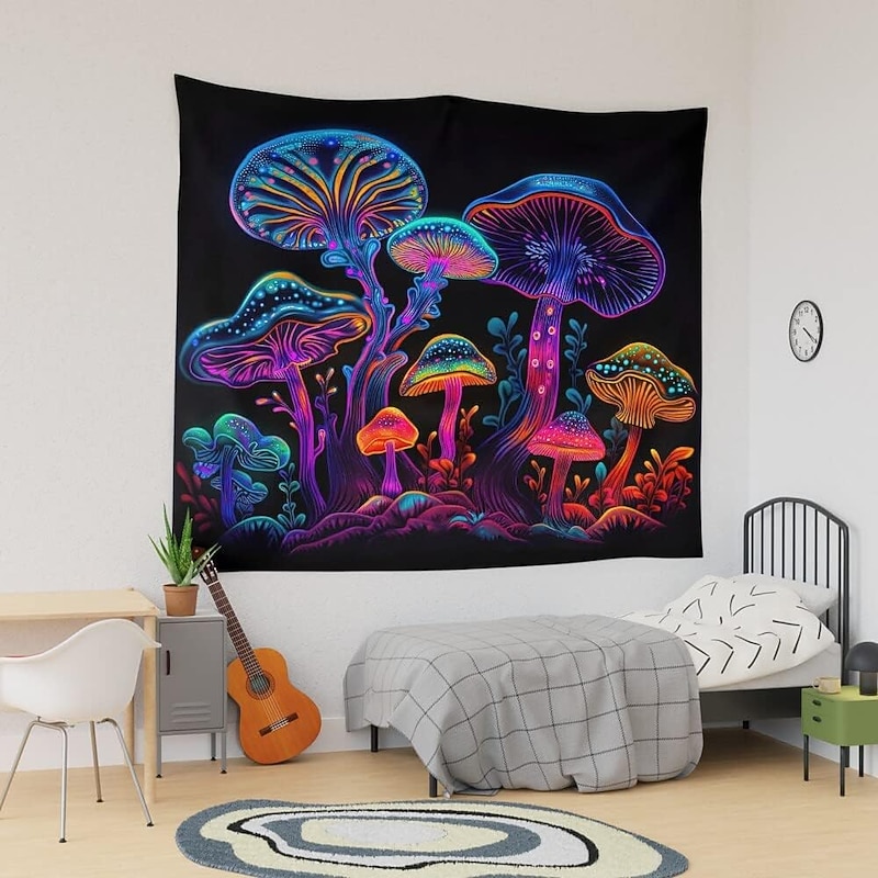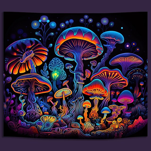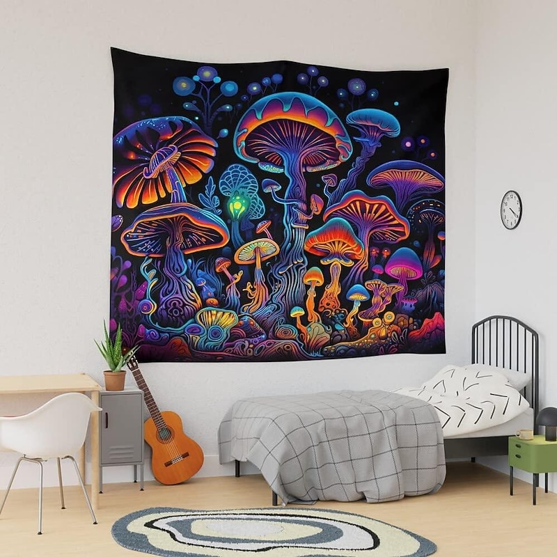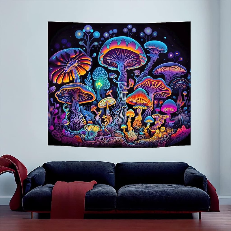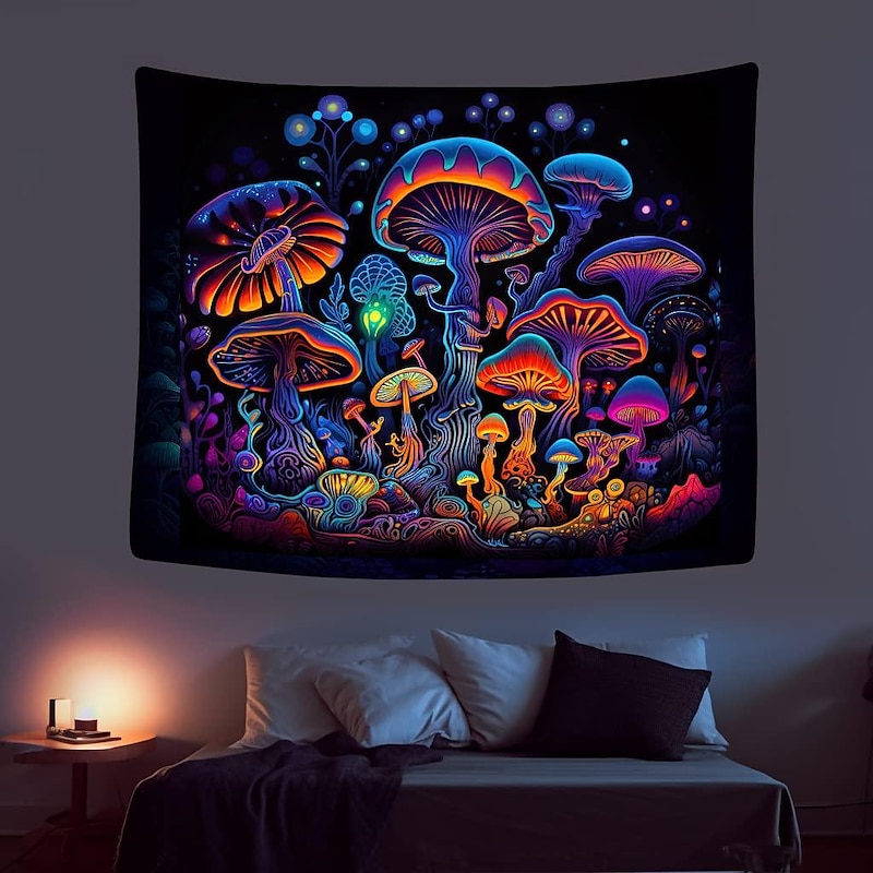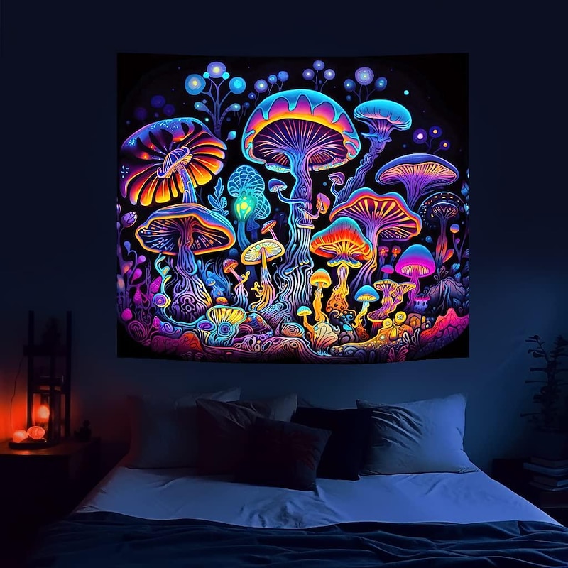 Blacklight Tapestry UV Reactive Glow in the Dark Glow Party Neon Mushrooms Psychedelic Trippy Misty Hanging Tapestry Wall Art Mural for Living Room Bedroom 18