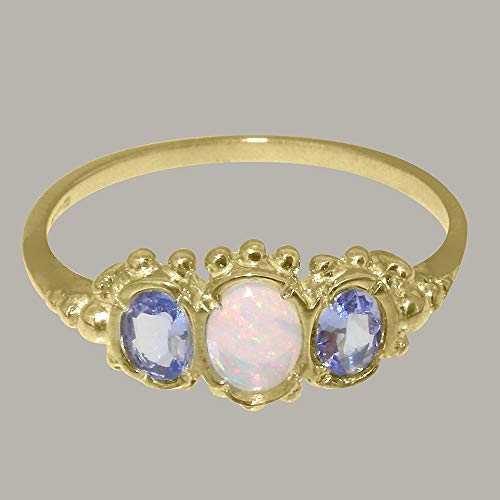 Solid 9k Gold Natural Opal & Tanzanite Womens Trilogy Ring - Sizes 4 to 12 Available 6