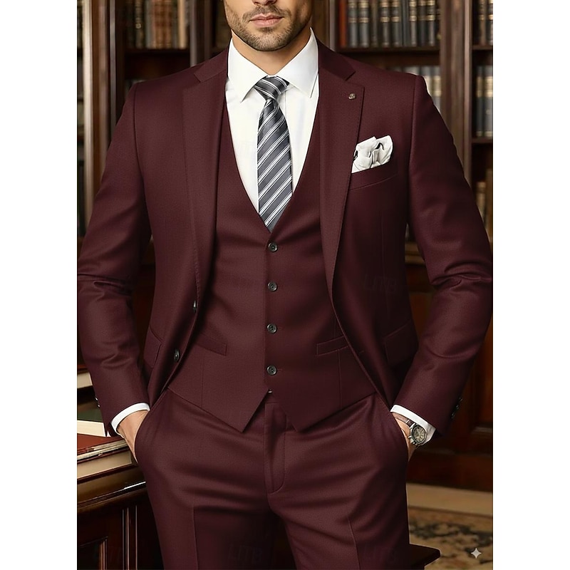 $115.99 - Men's Wedding Party Business Suits Notch Lapel Black Burgundy Daily Formal Solid Colored Slim Fit 3 Piece Single Breasted Two-buttons 2025. Shop for cheap Business Suits online? Buy at lightinthebox.com on sale today!