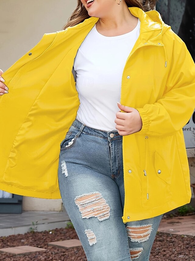 More information about Women's Hoodie Jacket Warm Comfortable Zipper Pocket Outdoor Casual Plain Casual Daily Weekend Zipper Regular Hooded Regular Fit Long Sleeve Outerwear Navy Black Yellow Fall Winter