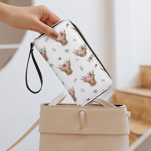 HOT ! Womens Wallet, Waterproof Pu Leather Card Holder Organizer Floral Cattle Highland Cow Zipper Long Purse with Multiple Card Slots