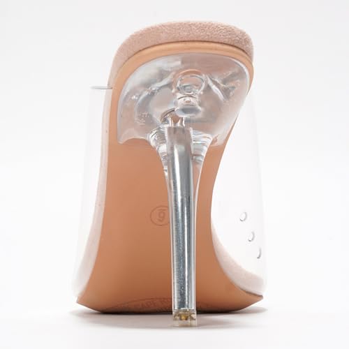 HOT ! Women's Clear Stiletto Mules - Sleek Round Toe, 3.75 Inch Heel, Genuine PU Leather Insole, Slip On Open High Heels (Allure.a)