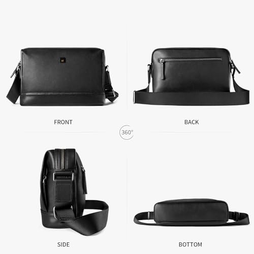 Men’s Genuine Leather Crossbody Shoulder Bag – First Layer Cowhide Messenger Bag with Adjustable Strap, Lightweight Small Satchel Fits Phone, Wallet, Keys, Black 4