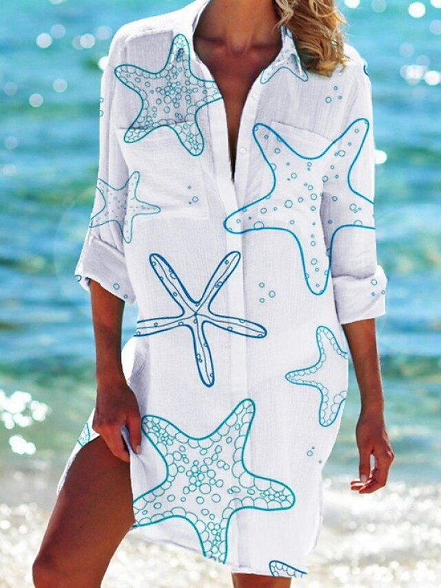 Highlights - Long sleeve women's shirt perfect for vacation or beach outings - Stylish graphic print design - Features a trendy shirt collar neckline