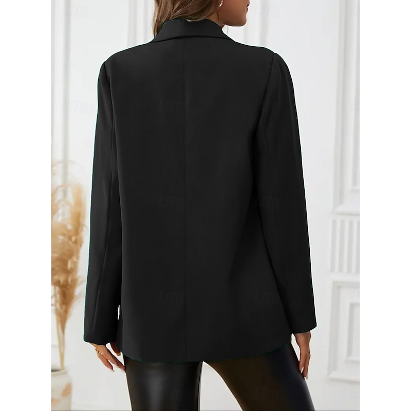 More information about Women's Blazer Warm Breathable Pocket OL Style Casual Plain Formal Office Work Open Front Regular Turndown Regular Fit Long Sleeve Outerwear Black Fuchsia Summer Spring