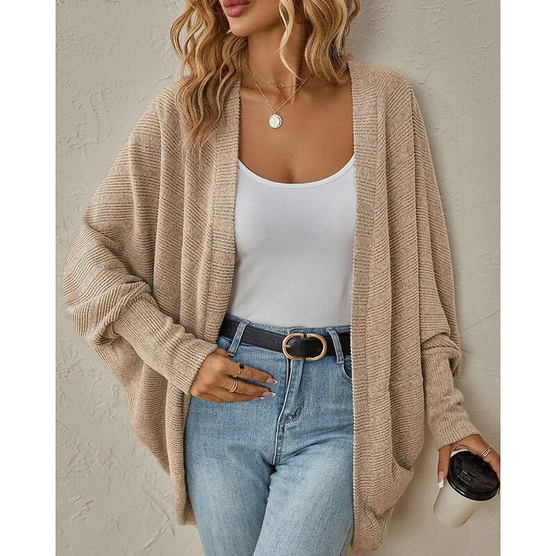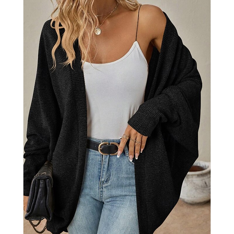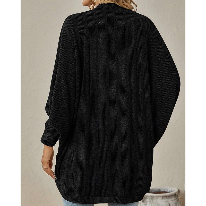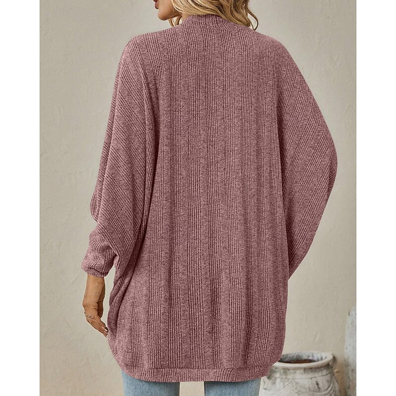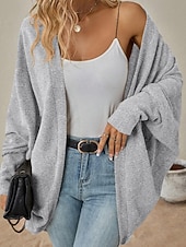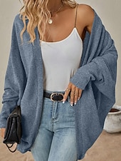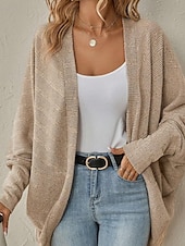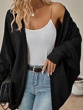 More information about Women's Cardigan Casual Solid Color Ribbed Cowl Knitted Long Sleeve Regular Tops Knit Outdoor Holiday Going out Black Pink Fall