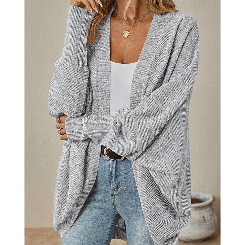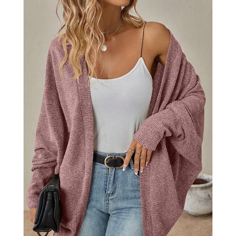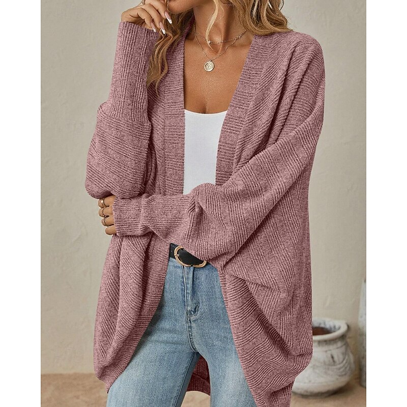 HOT ! Women's Cardigan Casual Solid Color Ribbed Cowl Knitted Long Sleeve Regular Tops Knit Outdoor Holiday Going out Black Pink Fall